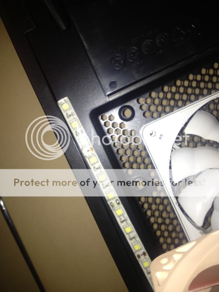 Wonderful! Please don't lecture me on the tidiness of the case.. I know the cable management could do with some work. But the lighting is great! Also, because I hooked the LED strip up to my fan controller I can also dim the lighting a bit. Here are a few tests from off to full brightness.